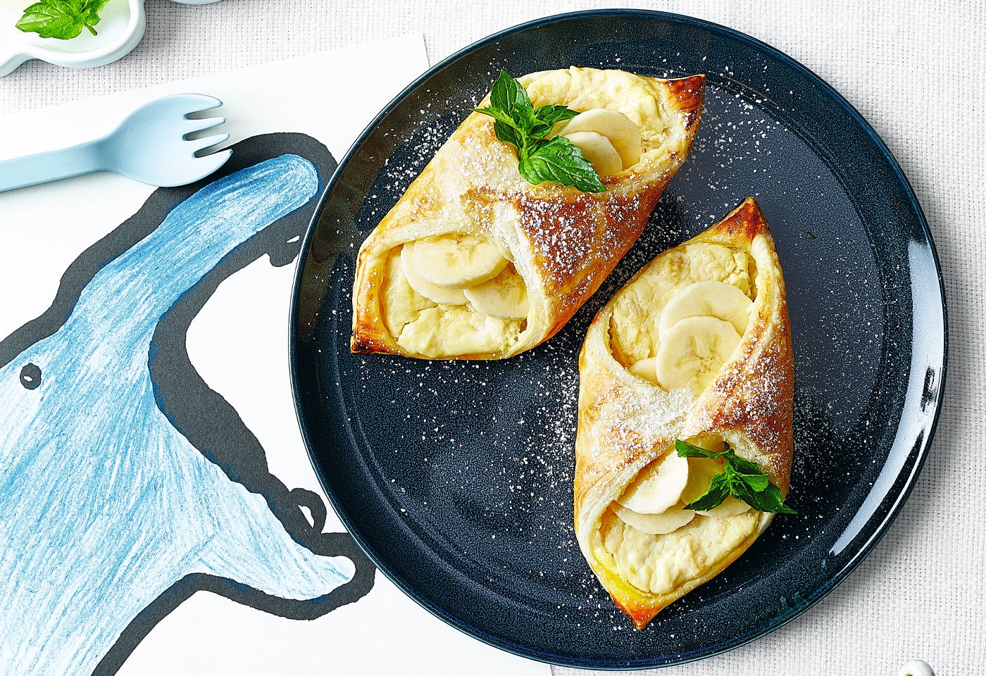 Bananen-Blätterteigtascherl mit Salzkaramellsauce
