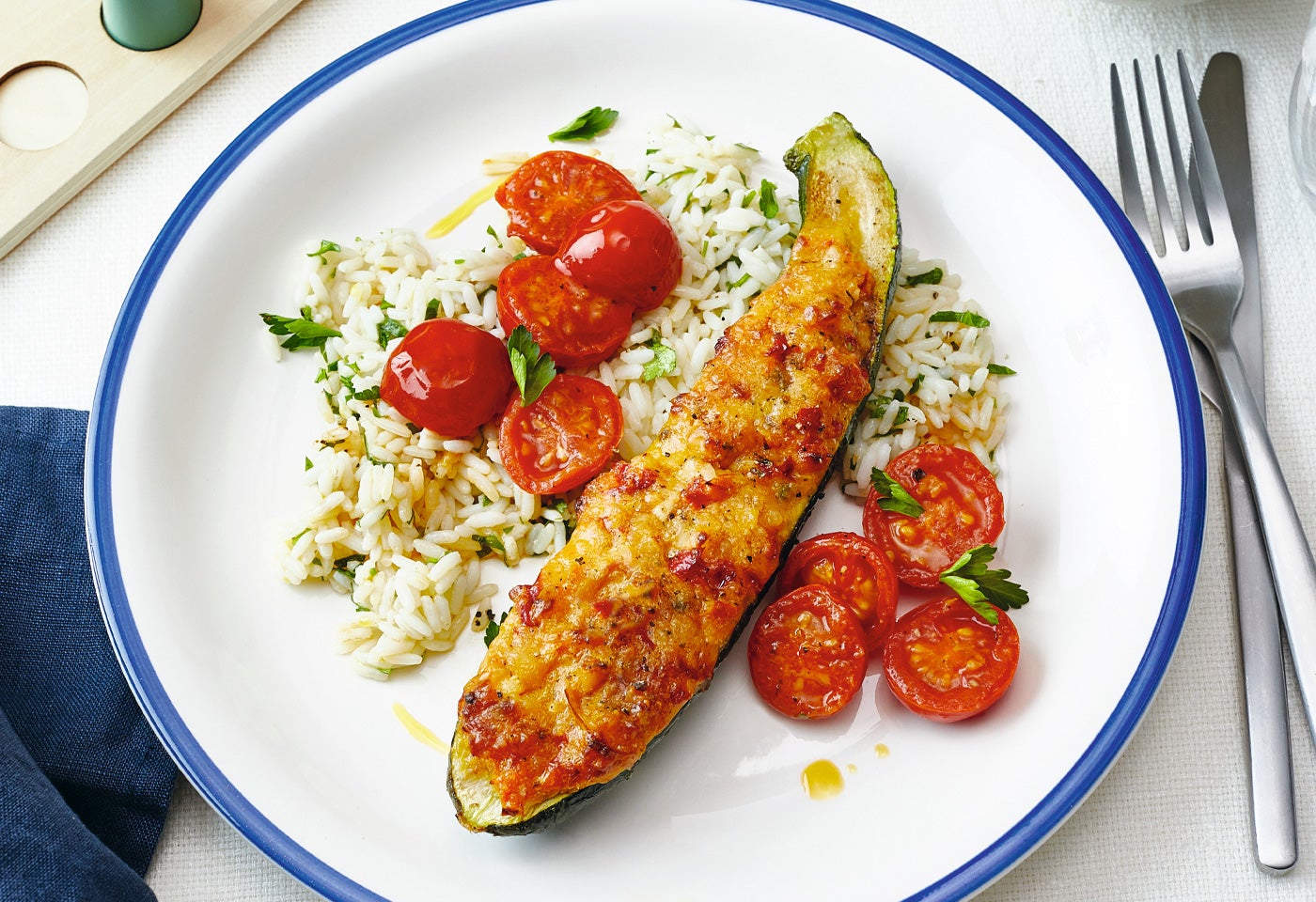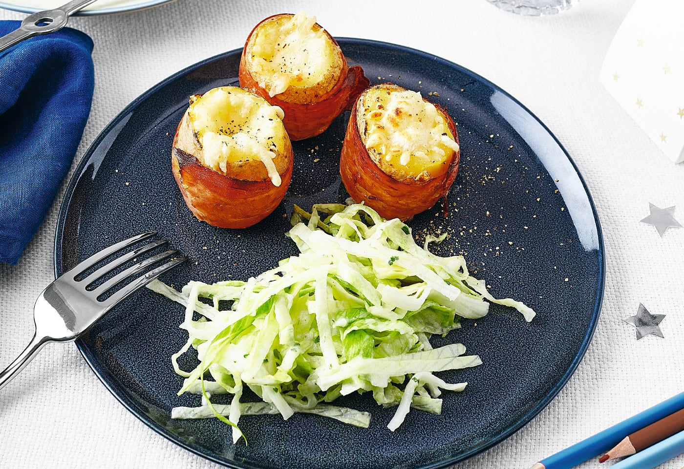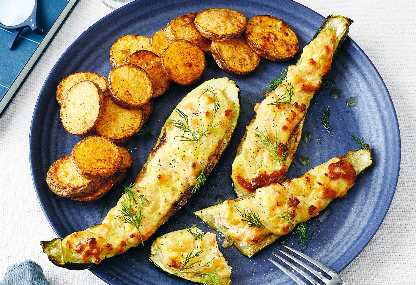 Gratinierte Zucchini mit Räucherlachs und Ofenerdäpfeln
