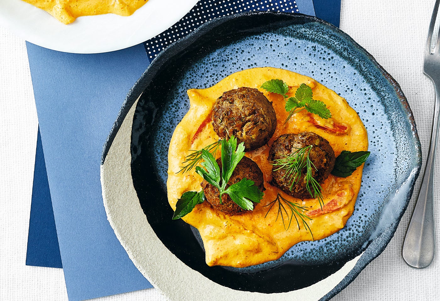 Linsen-Zucchini-Falafeln mit Grillpaprika-Sauce