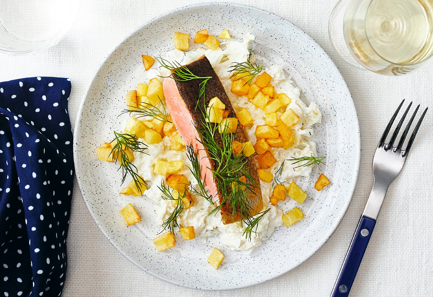 Knuspriger Wildlachs auf Rahmsauerkraut
