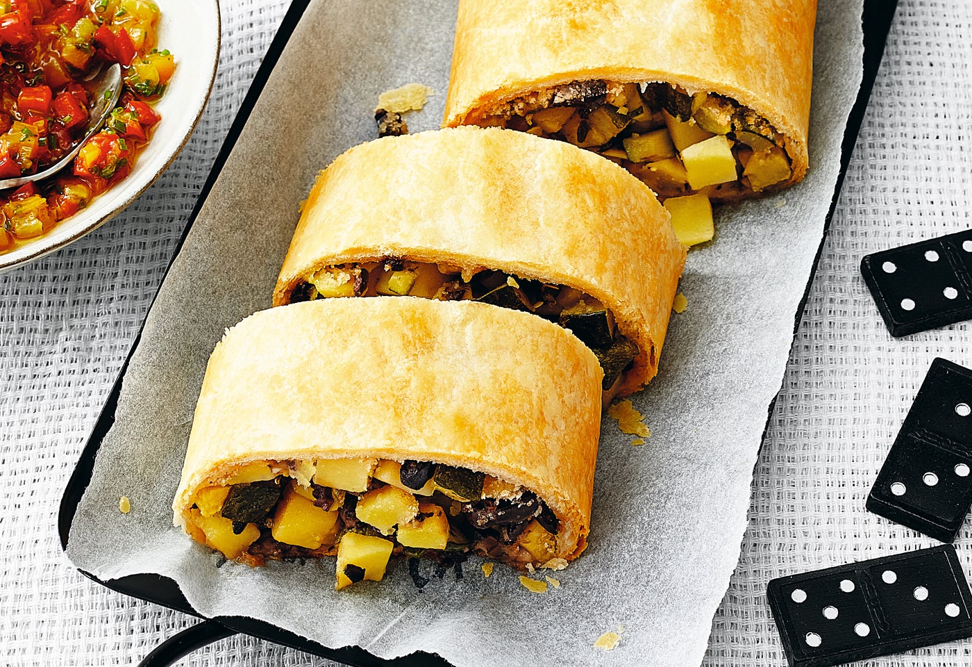 Mediterraner Gemüsestrudel mit Paprikasauce