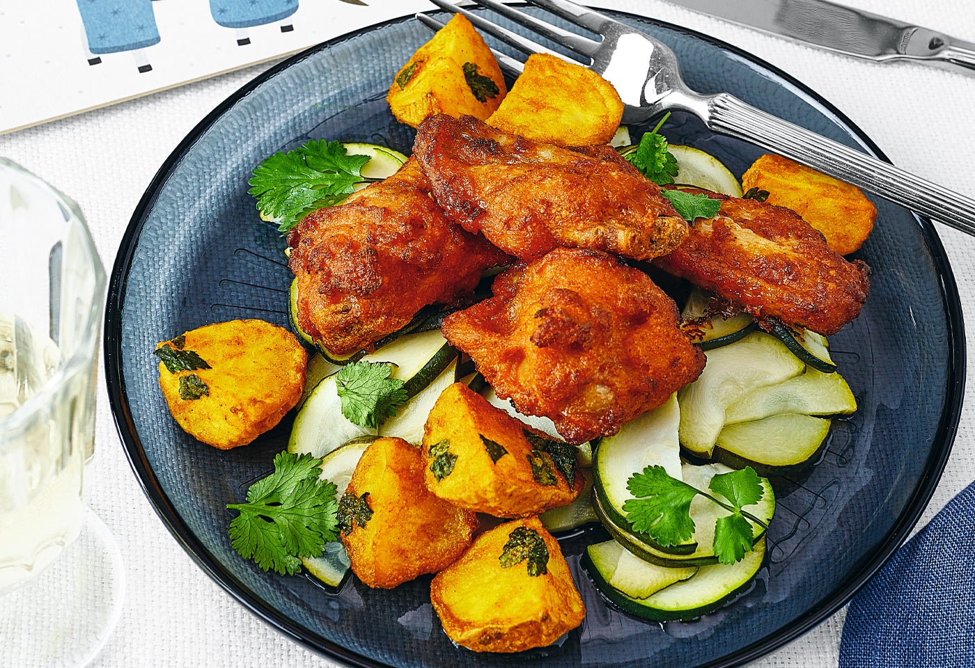 Chicken Wings mit Curry-Kräuter-Erdäpfeln