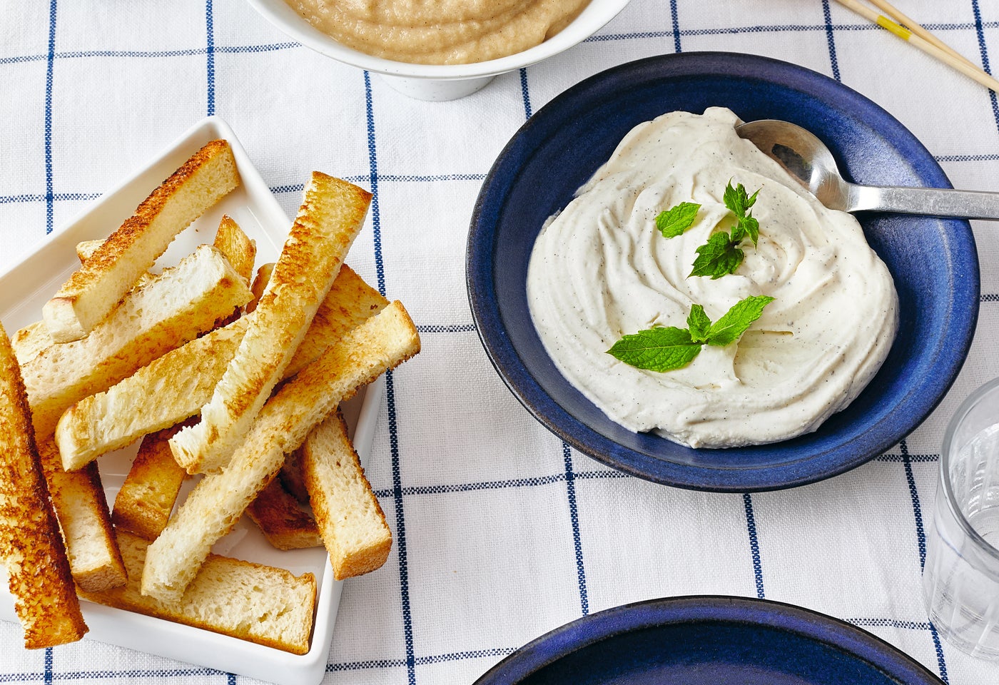 Knusprige Briochesticks mit Vanille-Crème-fraîche und Apfel-Gewürz-Butter