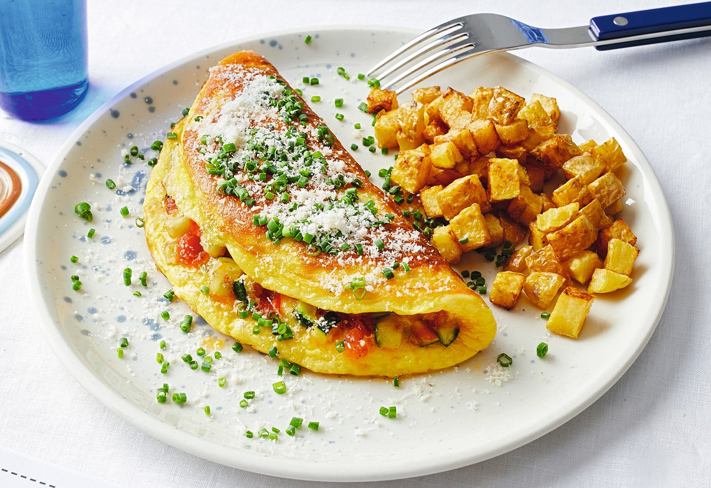 Gemüseomelette mit knusprigen Erdäpfelwürfeln