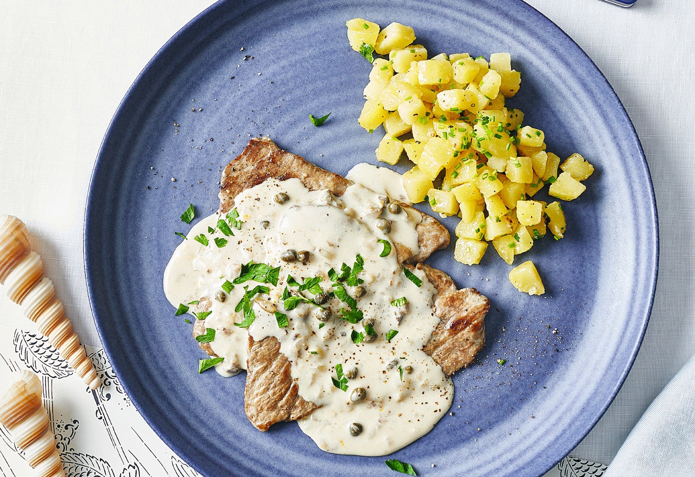 Rindsschnitzel in Kapernsauce mit Schnittlauch-Erdäpfeln
