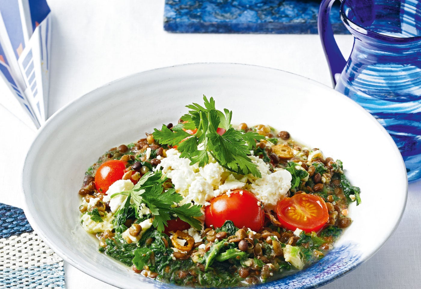 Linsen-Spinat-Eintopf mit Hirtenkäse