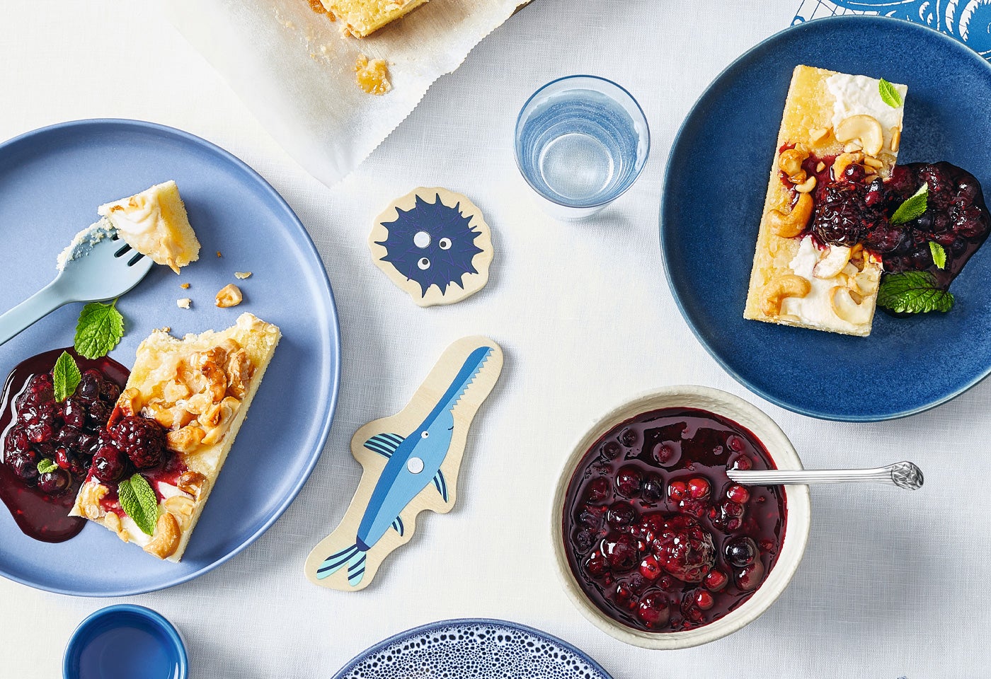Topfenkuchen mit Cashewkrokant und Waldbeerenröster