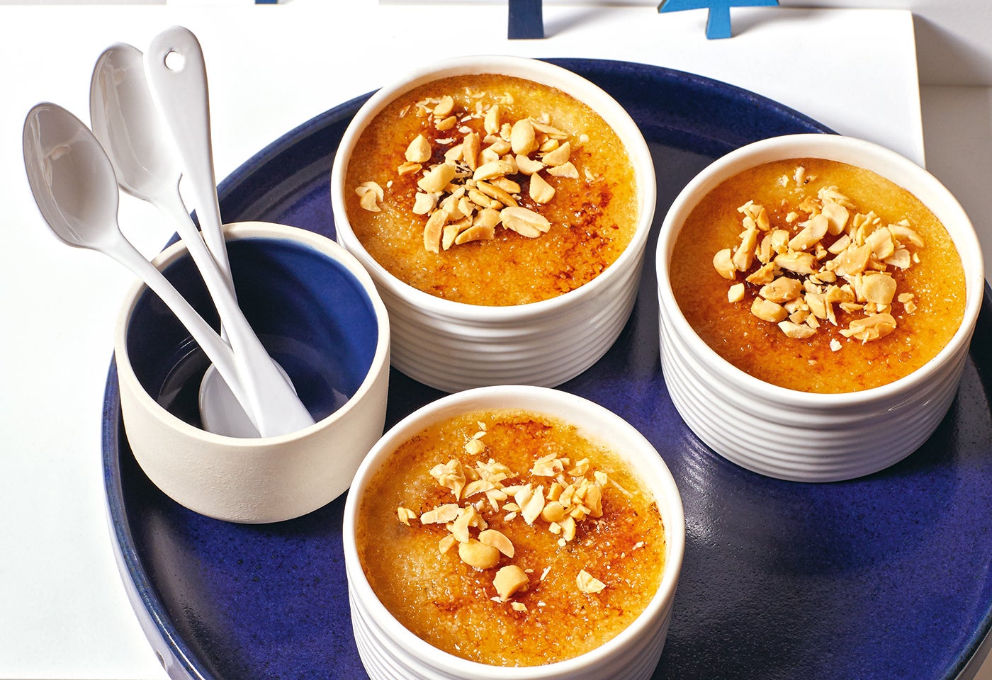 Bananenpudding mit Karamelkruste und Erdnüssen