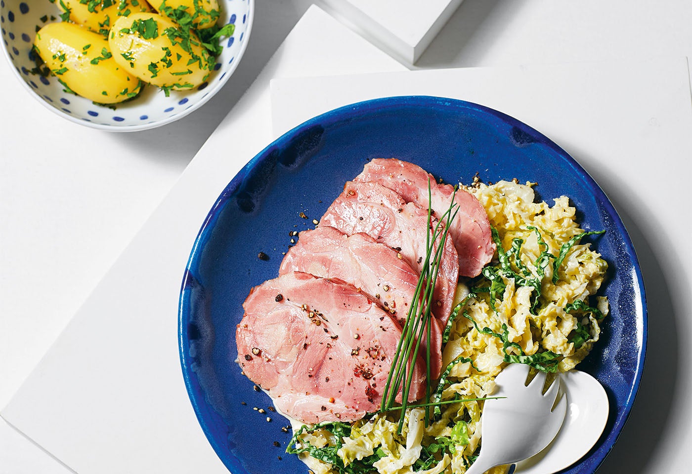 Geselchtes mit Rahmkohl und Petersilerdäpfeln