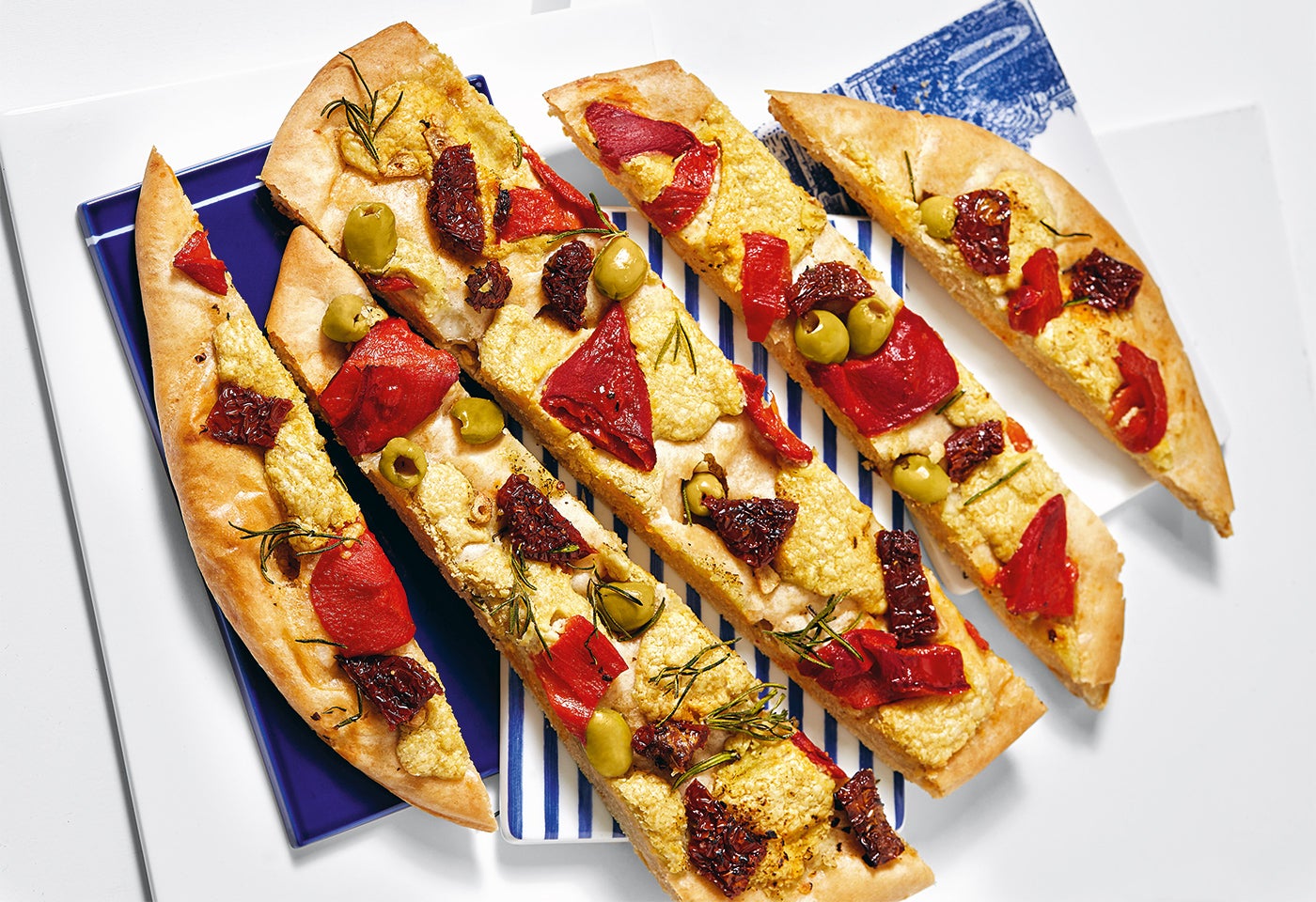 Focaccia mit Antpasti-Gemüse und Hummus