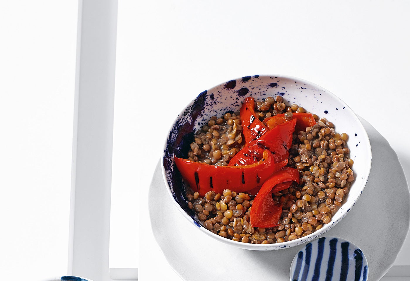 Linsen-Dal mit gegrillten Paprika, Basmatireis und Joghurt