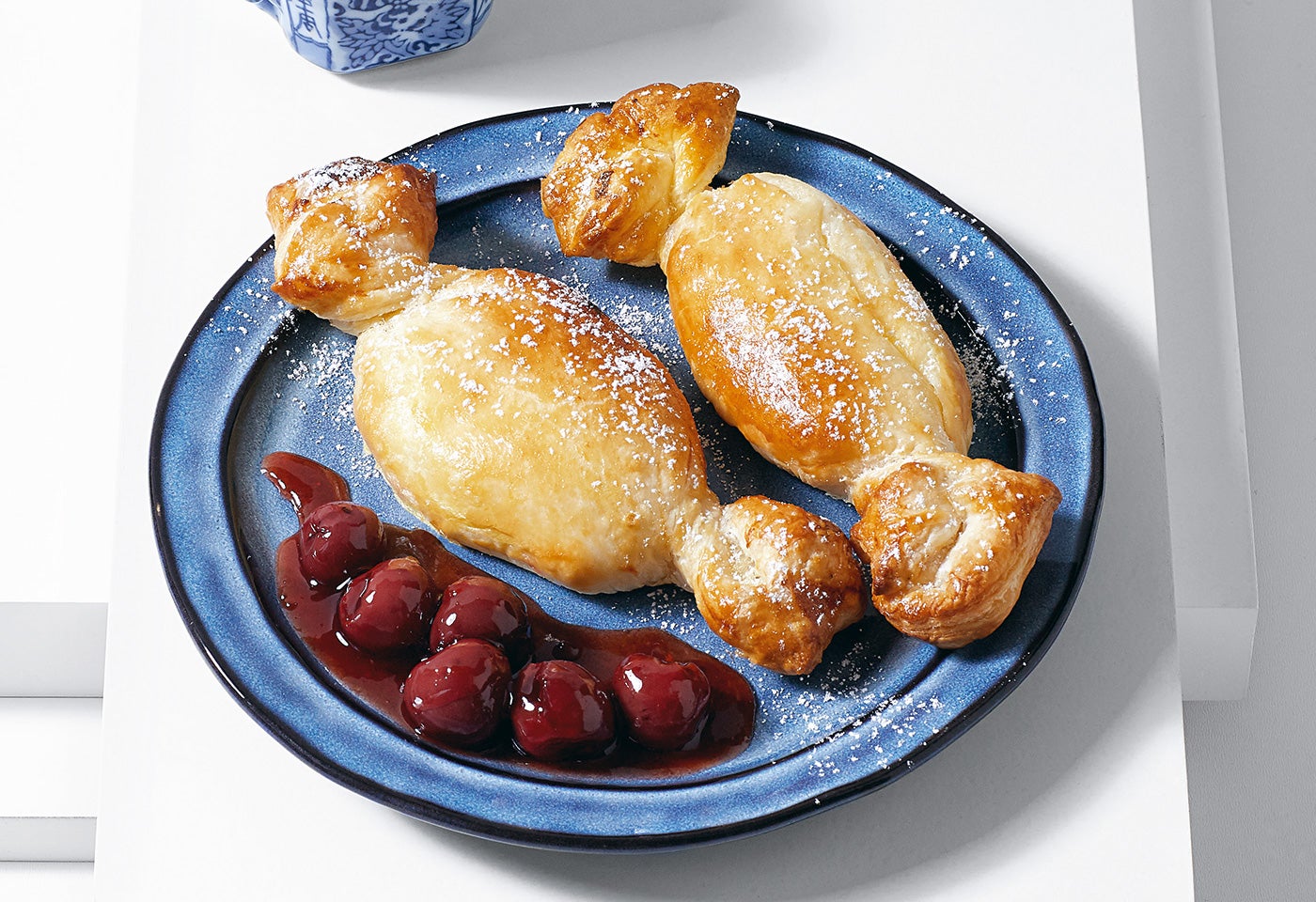 Topfenstrudel-Bonbons mit glasierten Weichseln