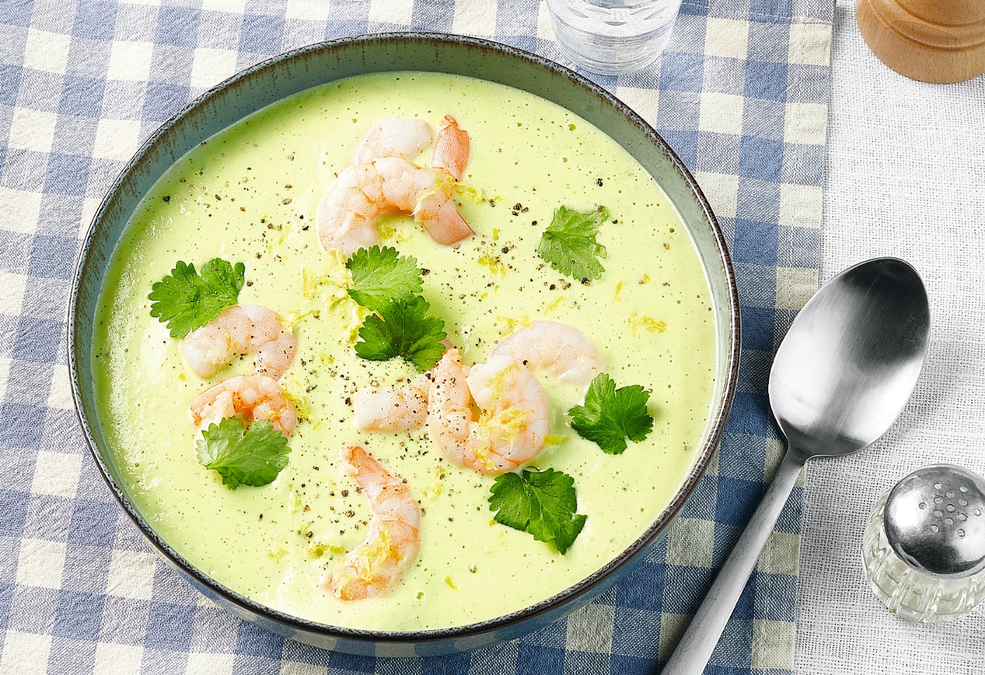 Avocadosuppe mit Garnelen