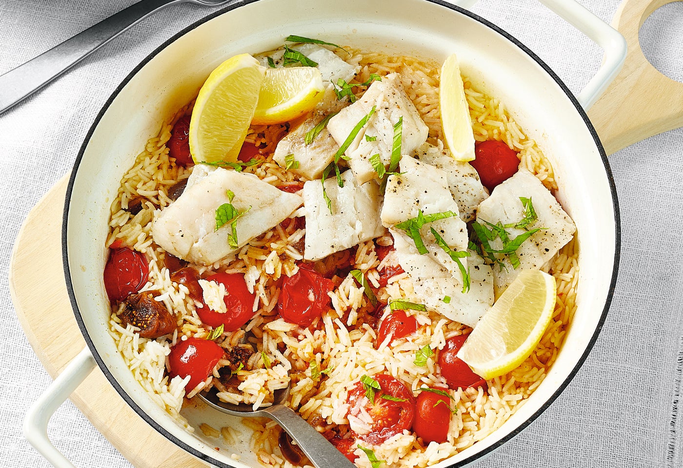 Pilaw mit Seelachs, Trockenfrüchten und Cherrytomaten