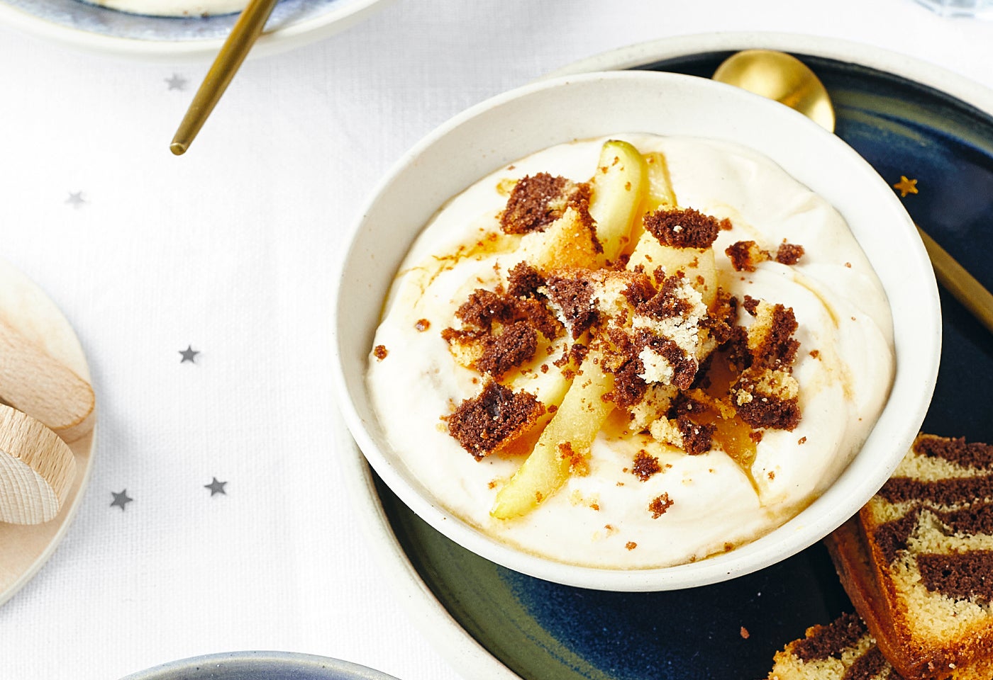 Kaffee-Joghurt-Creme mit Karamellbirnen und Gugelhupfzwieback