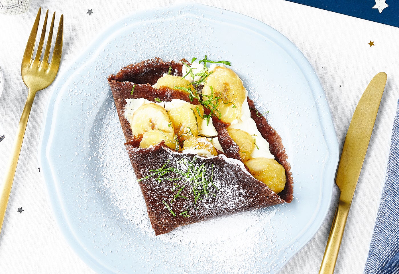 Kakao-Palatschinken mit gebratenen Bananen
