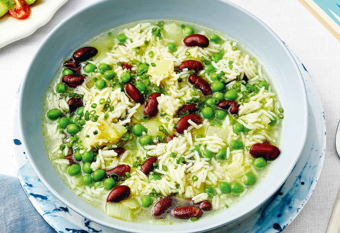 Reissuppe mit Bohnen und Erbsen