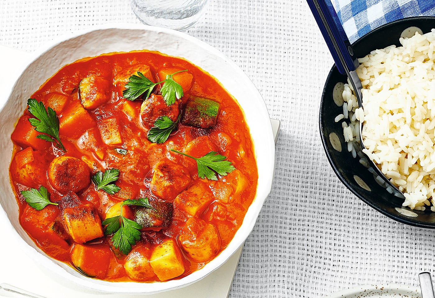 Bratwürstel-Curry mit Reis