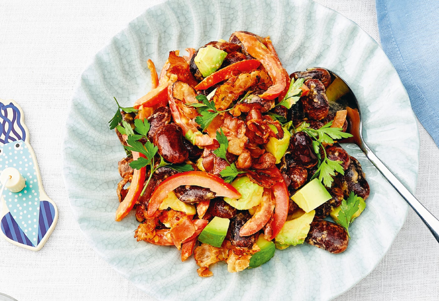 Käferbohnensalat mit Avocados und knusprigem Bacon