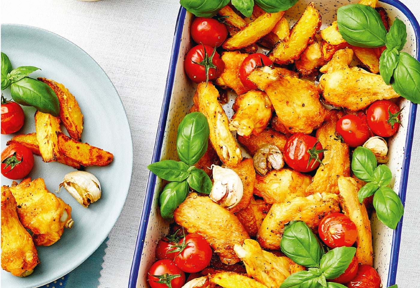 Ofenhendlflügerl mit pikanten Erdäpfelwedges