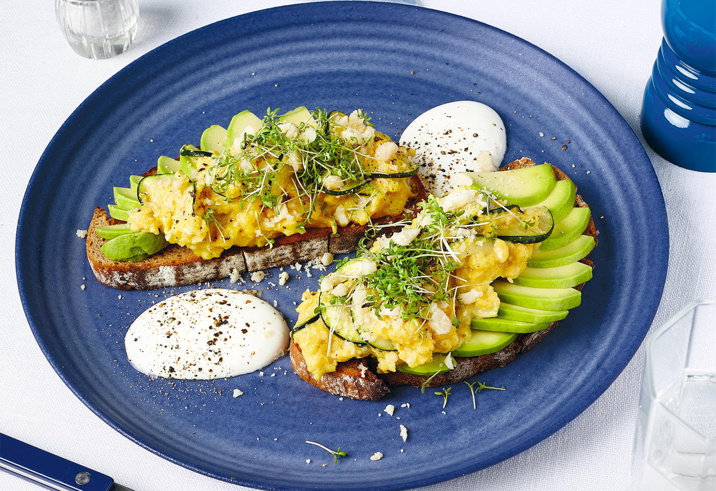 Zucchini-Eierspeis-Brot mit Avocado