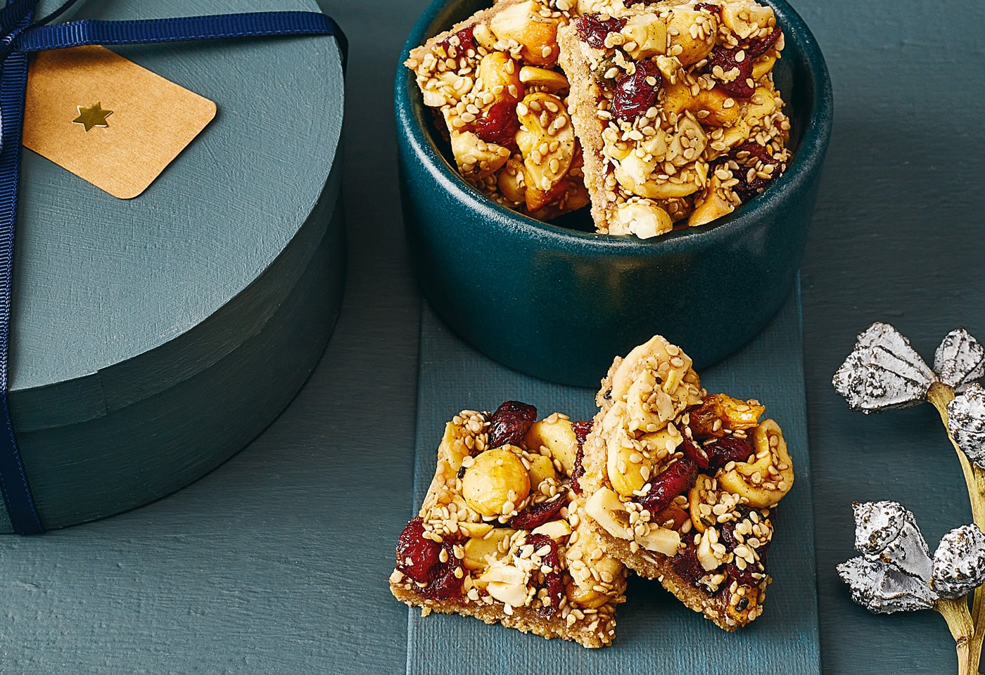 Zuckerreduzierte Superfood-Riegel mit Sesam und Cranberrys
