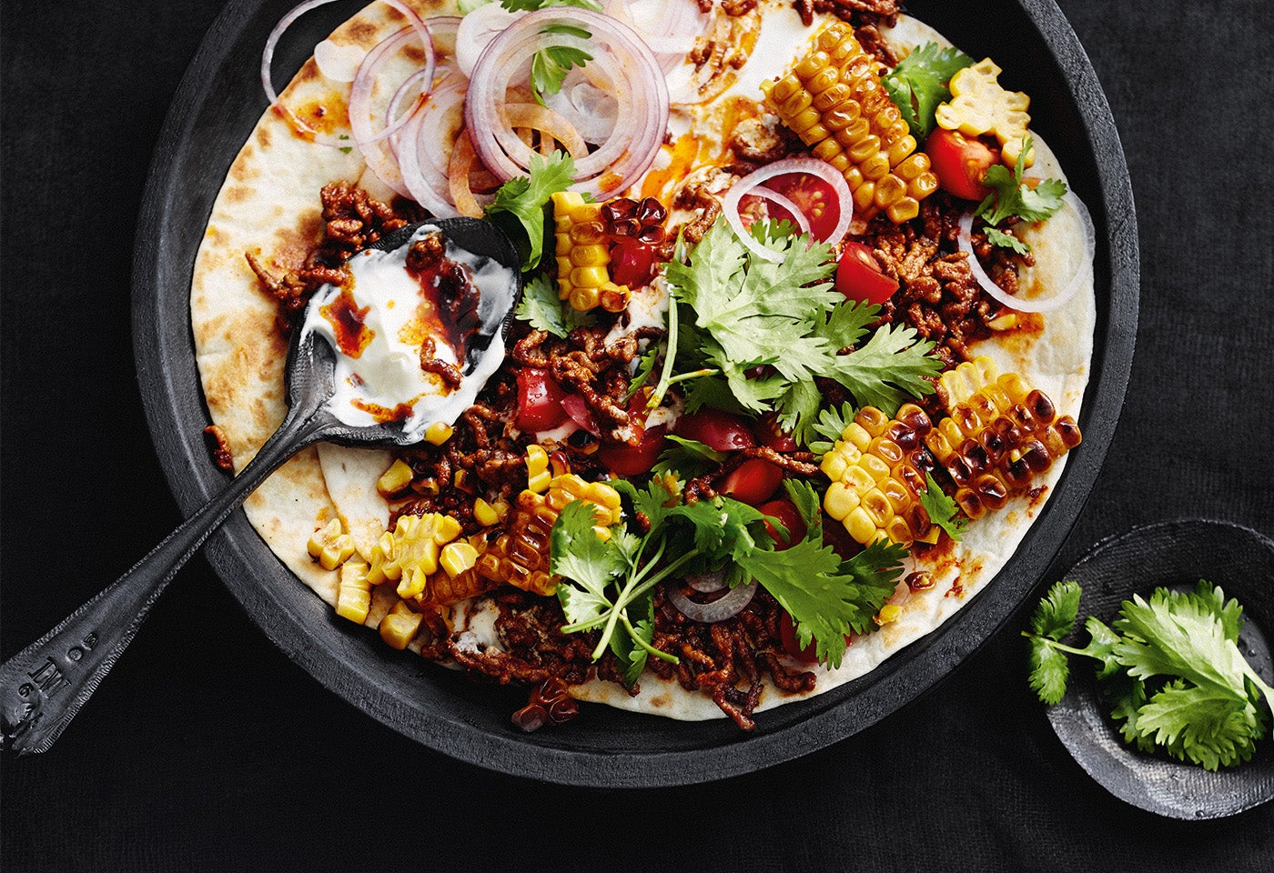 Tortillas mit Faschiertem, Mais und Joghurt