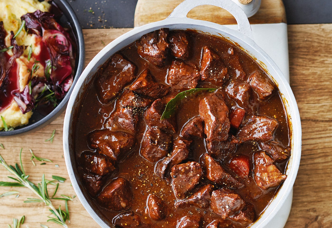 Rindsgulasch mit Parmesanpolenta und gebratenem Radicchio