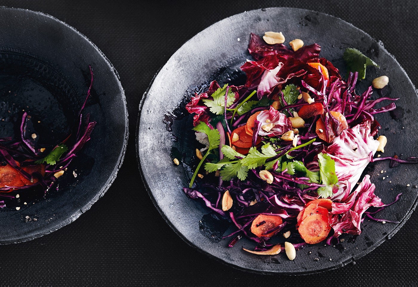 Rotkraut-Karottensalat mit Radicchio, Koriander und Nüssen