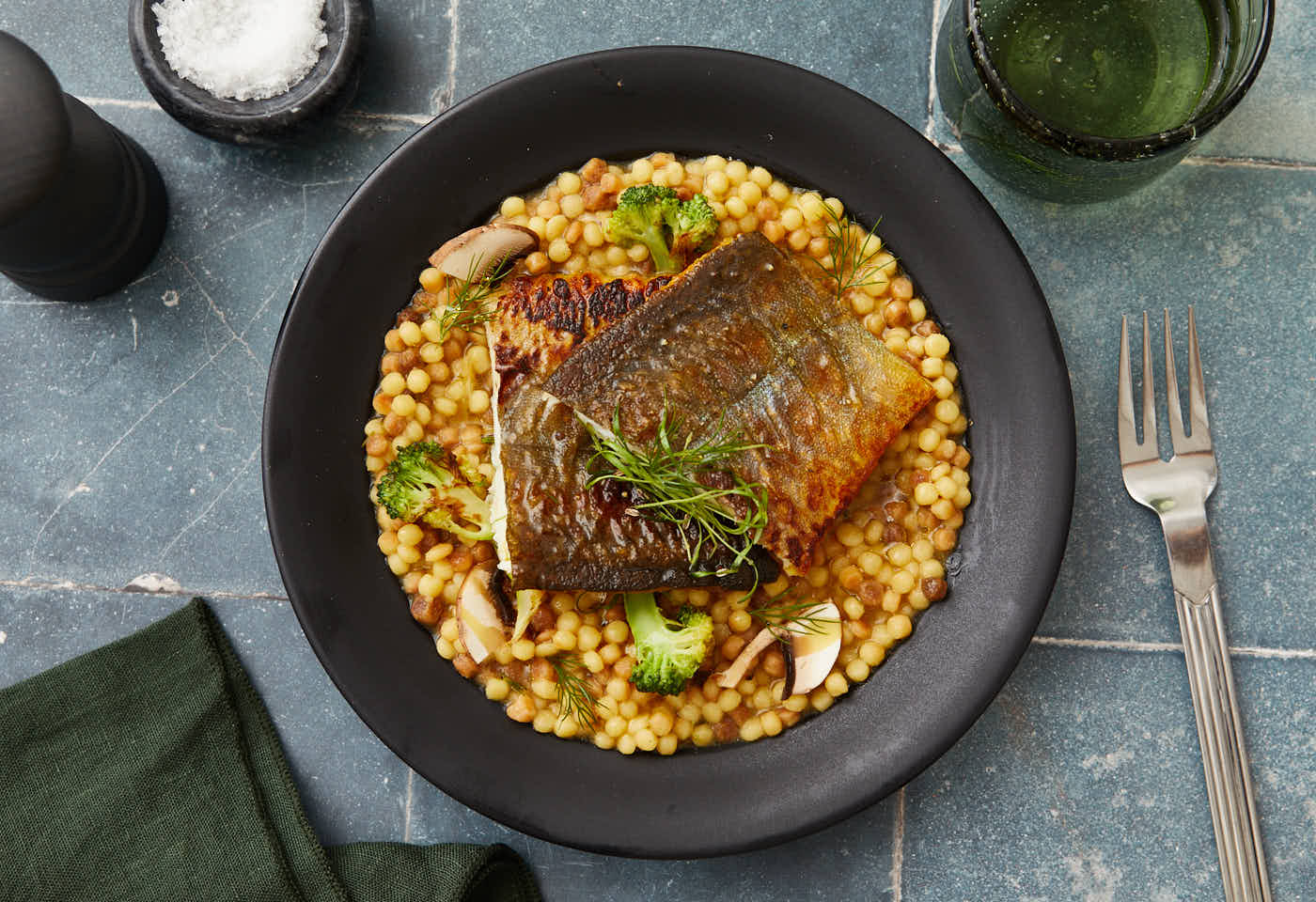 Saibling mit Fregola Sarda & wildem Brokkoli