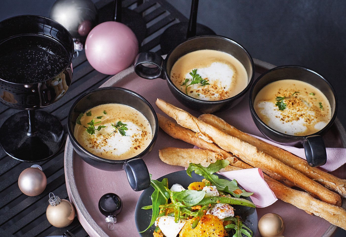 Steinpilz-Cappuccino mit Kerbel und Grissini