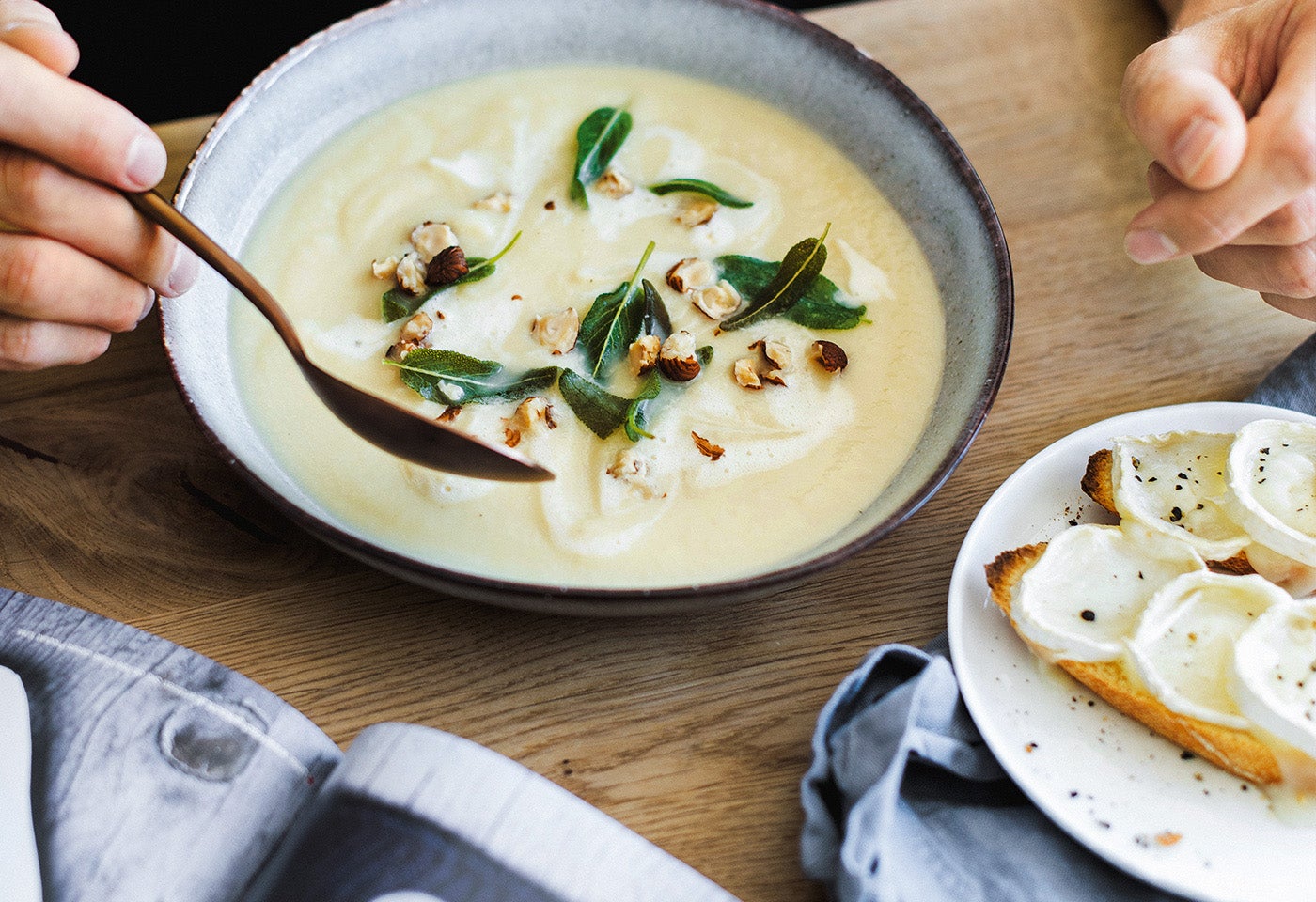 Sellerie-Apfel-Suppe mit Nüssen und Crostini
