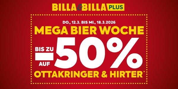 Gültig von Do., 12.2. bis Mi., 18.2.2026. Angebote gültig, solange der Vorrat reicht, exkl. Flascheneinsatz. Ausgenommen: BILLA Online Shop, BILLA CORSO Märkte,BILLA Kleinflächen-Märkte (Wien Hauptbahnhof, Wien Westbahnhof), BILLA stop&shop, BILLA Unterwegs, BILLA Box, VIVA BILLA, BILLA NOW und BILLA TO GO. Abgabe nur in Haushaltsmengen. Generell gilt eine Haushaltsmenge von 10 Einheiten. Die Ausnahme von 5 Einheiten gilt für Dosen-Getränke-24er-Umkartons sowie Haltbarmilch-Kartons. Kein Verkauf an Wiederverkäufer. Preis in Klammern ist die gesetzliche Grundpreisauszeichnung. Unsere Statt-Preise sind die niedrigsten Preise der letzten 30 Tage. Preise werden kaufmännisch gerundet.