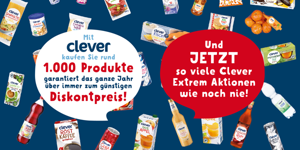 Mit clever kaufen Sie rund 1.000 Produkte garantiert das ganze Jahr über immer zum günstigen Diskontpreis.
