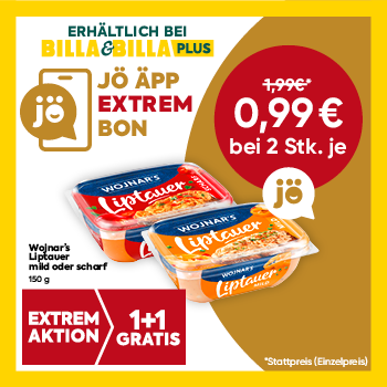 Der jö Rabattsammler kann einmal pro Monat bei BILLA oder BILLA PLUS eingelöst werden.