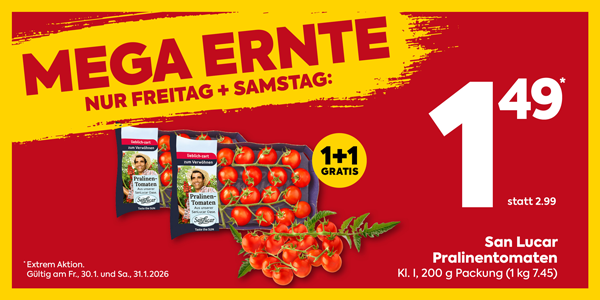 Gültig von Do., 29.1. bis Mi., 4.2.2026. Angebote gültig, solange der Vorrat reicht, exkl. Flascheneinsatz. Ausgenommen: BILLA Online Shop, BILLA CORSO Märkte,BILLA Kleinflächen-Märkte (Wien Hauptbahnhof, Wien Westbahnhof), BILLA stop&shop, BILLA Unterwegs, BILLA Box, VIVA BILLA, BILLA NOW und BILLA TO GO. Abgabe nur in Haushaltsmengen. Generell gilt eine Haushaltsmenge von 10 Einheiten. Die Ausnahme von 5 Einheiten gilt für Dosen-Getränke-24er-Umkartons sowie Haltbarmilch-Kartons. Kein Verkauf an Wiederverkäufer. Preis in Klammern ist die gesetzliche Grundpreisauszeichnung. Unsere Statt-Preise sind die niedrigsten Preise der letzten 30 Tage. Preise werden kaufmännisch gerundet.
