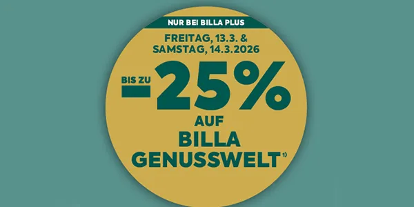 Gültig von Do., 12.3. bis Mi., 18.3.2026. Angebote gültig, solange der Vorrat reicht, exkl. Flascheneinsatz. Ausgenommen: BILLA Online Shop, BILLA CORSO Märkte,BILLA Kleinflächen-Märkte (Wien Hauptbahnhof, Wien Westbahnhof), BILLA stop&shop, BILLA Unterwegs, BILLA Box, VIVA BILLA, BILLA NOW und BILLA TO GO. Abgabe nur in Haushaltsmengen. Generell gilt eine Haushaltsmenge von 10 Einheiten. Die Ausnahme von 5 Einheiten gilt für Dosen-Getränke-24er-Umkartons sowie Haltbarmilch-Kartons. Kein Verkauf an Wiederverkäufer. Preis in Klammern ist die gesetzliche Grundpreisauszeichnung. Unsere Statt-Preise sind die niedrigsten Preise der letzten 30 Tage. Preise werden kaufmännisch gerundet.