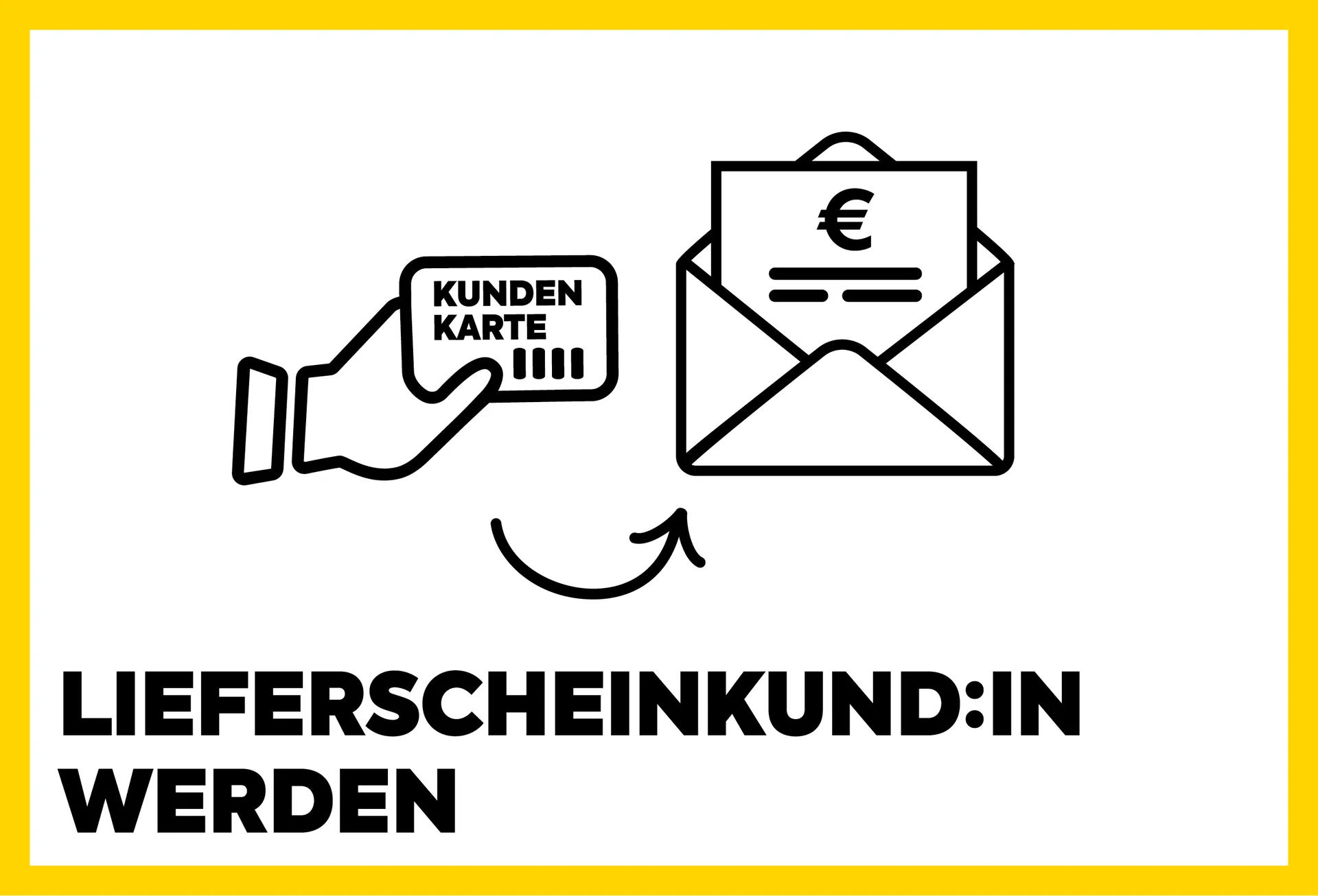 3. Sie erhalten danach die Lieferschein-Kundenkarte direkt im Markt oder, falls eine Bonitätsprüfung erfolgt, eingeschrieben per Post an die im Formular angegebene Adresse.